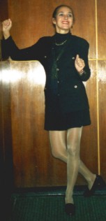 Трехтомный англо-русский словарь (или толстые справочники и каталоги), положенный на пол, вполне годится для степ-аэробики в медленном темпе (темп ускорять нельзя - вы же в офисе). Для этого же подходит библиотечная скамеечка. (Библиотека вообще идеальна для фитнеса - вас из-за полок не видно). Тот же трехтомный словарь нужен для выработки красивой походки: кладет словарь на голову (1-3 тома) и с ним ходите по комнате. Призываю также использовать рельеф местности: часто в офисах бывают удобные углы, ниши, приступочки, навесы, выемки. На фото я использую выемку в стене для приседаний с упором руками (ладонями упираюсь в выемку). Так что ищите (подручные офис-снаряды) да обрящите (хорошую форму). Дыхательные упражненияЧасто усталость приходит так быстро из-за того, что ваш организм недостаточно хорошо снабжается кислородом. В повседневной жизни у нас дыхание поверхностное, глубокие вдохи и выдохи чаще всего бывают эмоционального происхождения. Но многие уже взяли на вооружение простенький метод снятия напряжения: несколько глубоких вдохов-выдохов (вдох носом, выдох ртом) - после этого и успокаиваешься и жить становится легче.Все знают, что сочетание дыхательной гимнастики с двигательной лежит в основе аэробики и шейпинга: ведь с помощью глубокого дыхания и обогащения крови кислородом сжигается жир, а в сочетании с упражнениями на определенные группы мышц хорошо убирается жирок с проблемных областей. Но дыхательную гимнастику можно делать и в отрыве от двигательной, причем даже в условиях офисной или презентационной работы - сидя за письменным столом или стоя у стенда на выставке. В классические производственные гимнастики прежних лет обязательно входили наряду с двигательными упражнениями и просто дыхательные упражнения. Если вы в данную минуту работаете на стенде, за прилавком, за стойкой, или работа у вас связана с приемом посетителей: вы сидите за столом и нет возможности ни встать, ни отлучиться, ни сделать какие-либо упражнения - то дыхательная гимнастика это единственное, что возможно и доступно. Для производственной дыхательной гимнастики в условиях присутственного места и ограниченного пространства я выбрала три упражнения трех известных авторов: Шаталовой, Чайлдерс и Стрельниковой. Упражнение первое - дыхание животом. Кумир всех средневозрастных