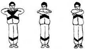 Женщинам начиная с шестого месяца беременности в упражнении "Обними плечи" голову назад не откидывать, выполнять упражнение только руками, стоя ровно и смотря прямо перед собой.