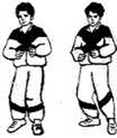 "Погончики" И.п.: станьте прямо, кисти рук сожмите в кулаки и прижмите к животу на уровне пояса. В момент вдоха резко толкайте кулаки вниз к полу, как бы отжимаясь от него (плечи напряжены, руки прямые, тянутся к полу). Затем кисти рук возвращаются в и.п. на уровень пояса. Плечи расслаблены - выдох "ушел". Выше пояса кисти рук не поднимайте. Сделайте подряд 8 вдохов-движений. Затем отдых 3-4 секунды и снова 8 вдохов движений.