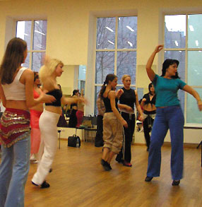 8. Встаньте на левую ногу, правую отведите в сторону на носок, левую руку поднимите вверх, правую отведите в сторону. На "раз" сделайте небольшой скачок на левой ноге и, подбивая ее правой ногой, поставьте левую ногу в сторону на носок. Правую ногу согните, правую руку поднимите вверх, левую отведите в сторону, туловище наклоните влево, голову налево. На "два" повторите то же движение, но вправо. Все выполняйте по 4 раза, плавно, легко и изящно, положение рук меняйте мягко, спину держите прямо, живот подтяните.