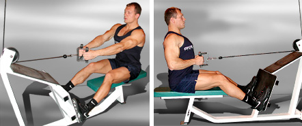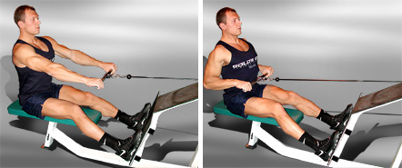 Выберите такую ширину хвата, чтобы предплечья располагались строго параллельно друг другу. Тяги сидя к животу с прямой рукояткой хватом сверху