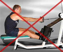 Во время упражнения сохранять спину прямой, не наклоняться вперед. Тяги сидя к животу (Как не надо делать)