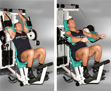 Ширина хвата такая, чтобы предплечья были строго параллельны друг другу. (i) Пуловеры на тренажере