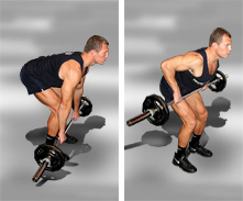Сохранять спину прямой, колени слегка согнутыми, голову всегда запрокинутой. (лицо обращено вперед). Ширину хвата такая, что руки параллельны друг другу. Наклон верхней части тела не больше 30 °. В верхней точке штанга располагается на уровне низа живота. В нижней - чуть ниже уровня колен. Движение происходит вдоль передней поверхности бедра к поясу.