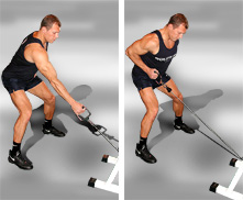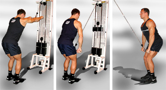 Рукоятку опускать к нижней части груди. Тяги стоя одной рукой с использованием нижнего блока