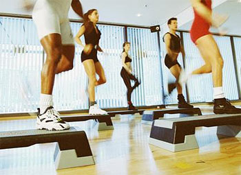 Упражнение 4 Исходное положение, встаньте спиной к шаговой платформе, ноги поставьте вместе, руки держите согнутыми в локтевых суставах. Запрыгните на степ и, не задерживаясь, прыжком вернитесь в исходное положение. Повторите 10 раз После этого потрясите ногами, расслабьтесь и усложните комбинацию. Примите исходное положение, запрыгните на степ и спрыгните с него на пол с другой стороны, совершая таким образом подряд два прыжка назад. Затем вспрыгните на степ, не поворачиваясь, после чего вернитесь в исходное положение. Повторите 10 раз. Упражнение 5 Исходное положение встаньте к шаговой платформе правым боком, руки согните, правую ногу поставьте на степ. Сделайте достаточно высокий прыжок, во время которого повернитесь в воздухе, приземлитесь левым боком к степу на правую ногу. Левая нога при этом должна свободно опуститься на степ. Подпрыгните еще раз, приземлившись в исходное положение. Повторите 10—15 раз. Упражнение 6